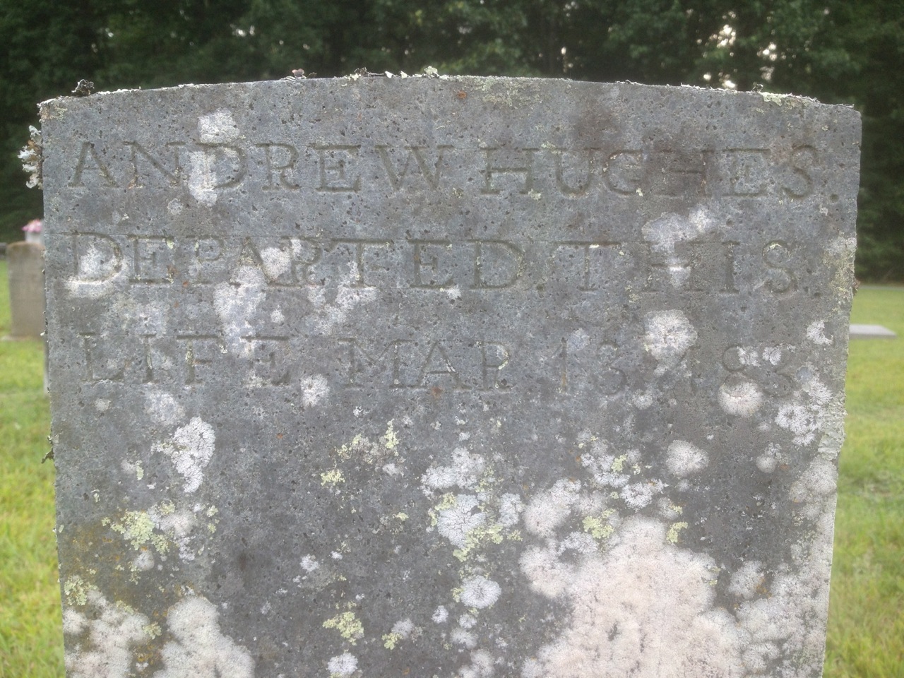 Recently I found a headstone at Stony Creek Presbyterian Church Cemetery for a man named Andrew Hughes. The inscription on the stone says simply: