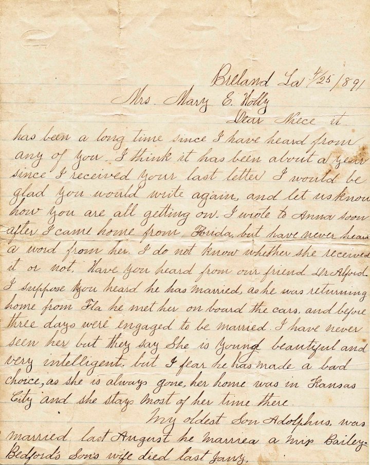 An 1891 letter from J.T. Peirce in Breland, Louisiana » Breland Album_0049-1