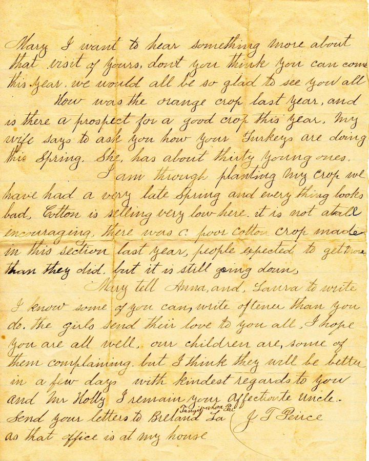 An 1891 letter from J.T. Peirce in Breland, Louisiana » Breland Album_0050-1